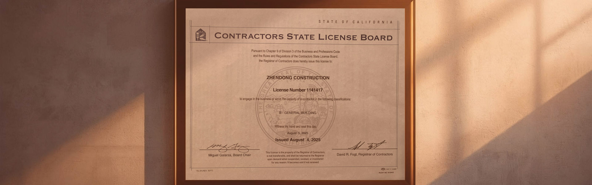 加州承包商执照在全加州通用,拿到后可在加州任何城市合法施工。